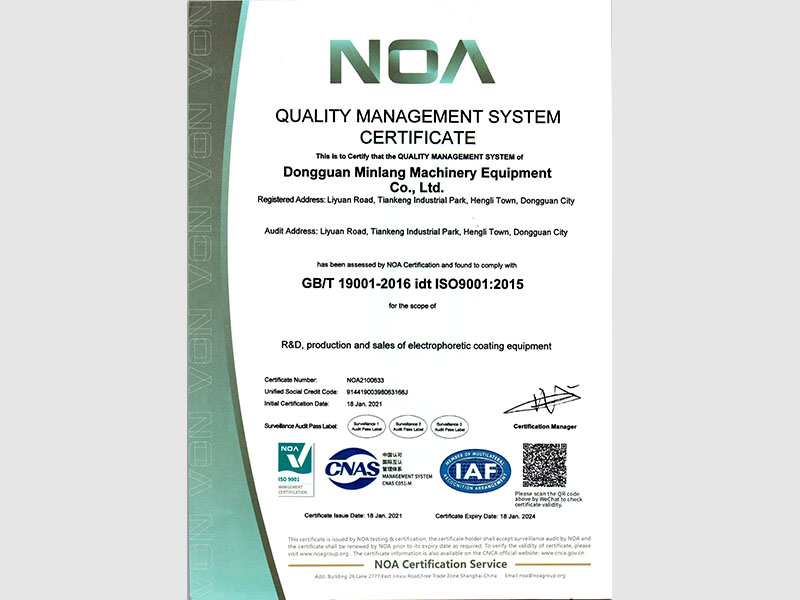 東莞市旻朗機械設備有限公司 ISO9001:2015 質量管理體系認證證書